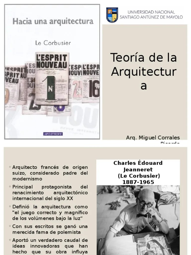 Hacia una arquitectura es un libro escrito por le corbusier y en menor medida por amédée ozenfant, quien firmó con el pseudónimo saugnier y cuya autoría sólo se constata en la primera edición.2 fue publicado en la revista de vanguardia l'esprit nouveau, siendo en realidad una serie de artículos. . Apr 03, 2006 · hacia una arquitectura.